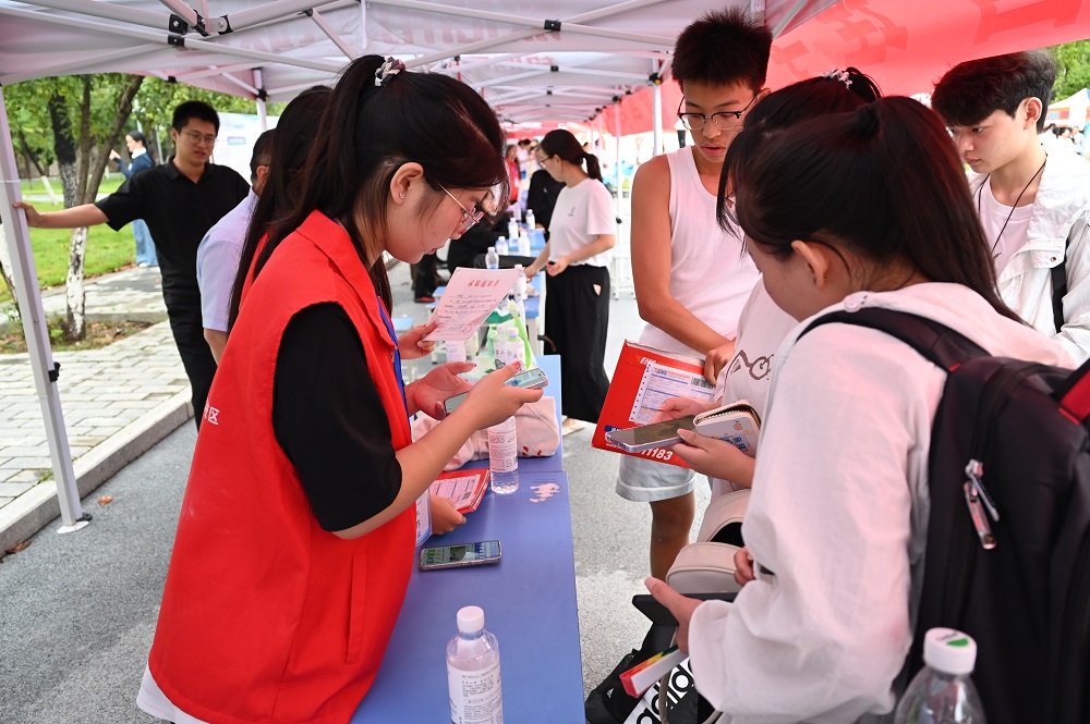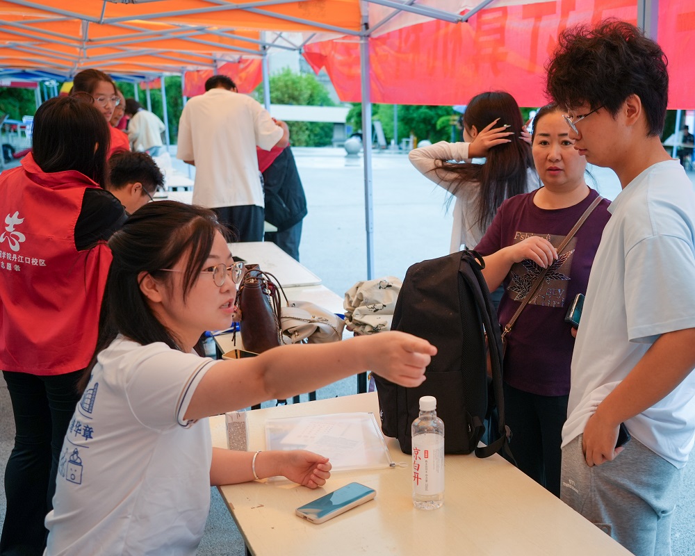 本次新生报到在丹江口市政府的支持下,市教育局、均州派出所、市文创专班、丹赵路禁毒办、建设银行等单位进驻迎新现场。通过开展禁毒、反诈宣传、文旅推介、志愿服务等,展现出丹江口市的良好风貌。