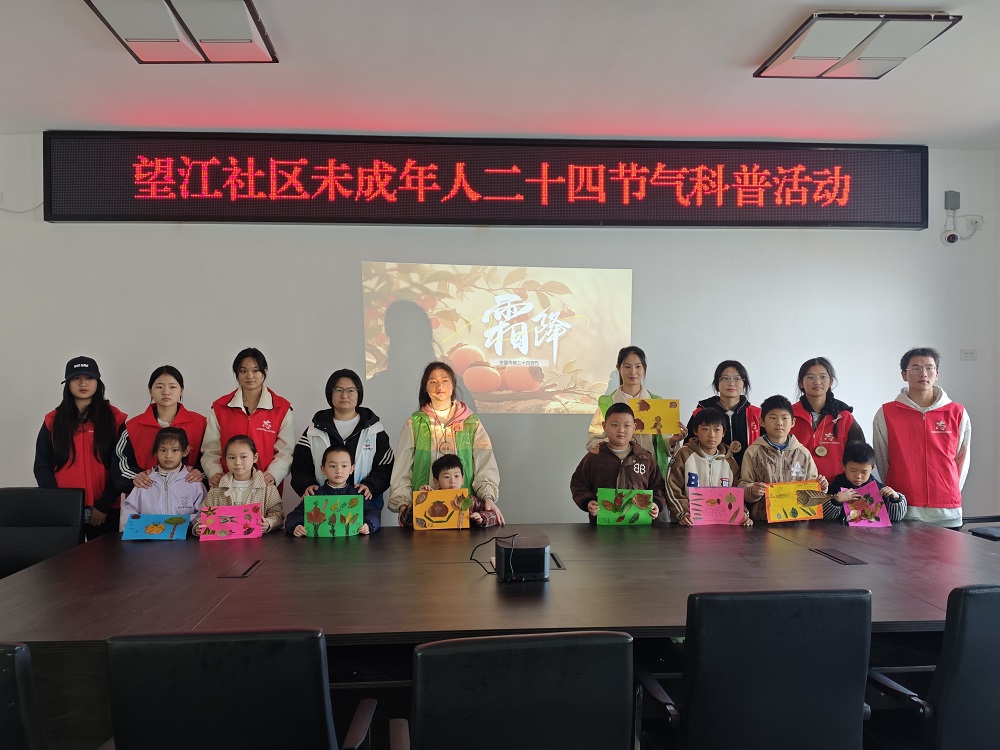 2025年10月26日上午,太阳集团城网站2018青鸽志愿服务队联合太阳集团城网站2018九色鹿科普团队走进望江社区,开展“霜凝叶趣,手工忆秋”二十四节气科普活动。