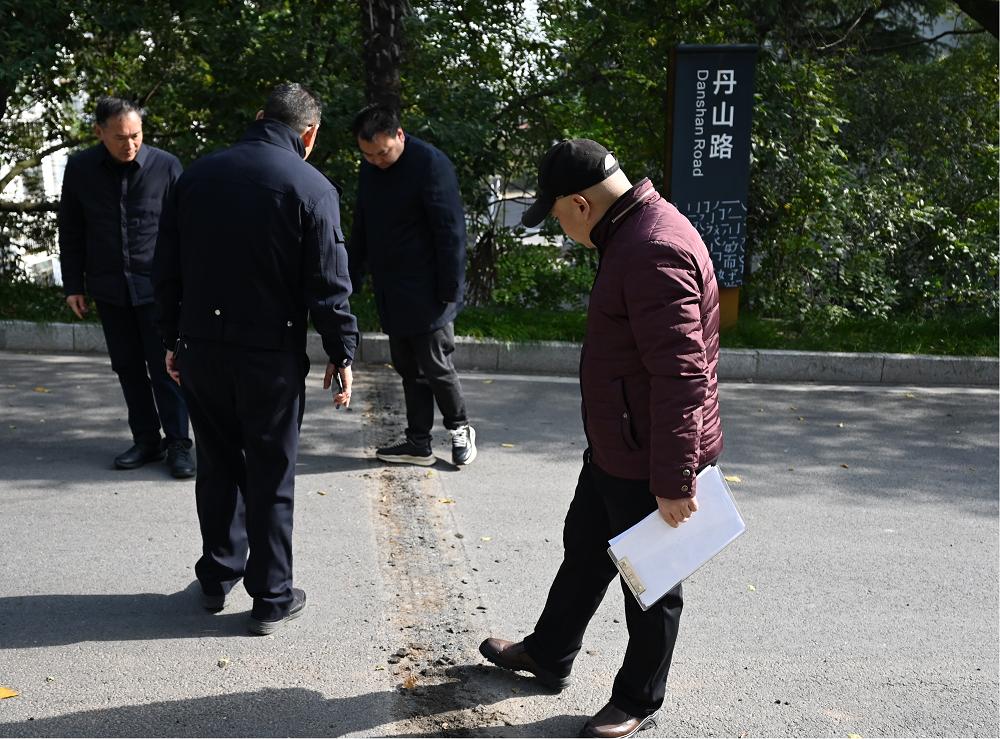 交警一中队队长张东一行沿着校园主干道、教学楼周边通道、宿舍区出入口、校门口衔接路段等重点区域开展实地勘察。调研中,交警队员结合校园交通流量特点、师生出行习惯,针对部分路段交通标识模糊、减速带设置间距、人车分流等问题,逐一提出优化建议。