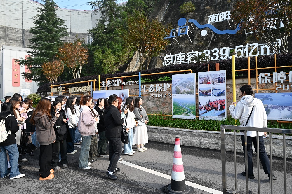 在雄伟的丹江口大坝,看碧波万顷,听讲解员讲述大坝在安全维护、水源地保护、抗洪防洪方面的重要作用,“以前课本里的‘南水北调’就是四个字,今天实地学习,才知道每一滴北上的清水里,都藏着无数人的日夜坚守!”任青青同学摸着坝壁,语气里满是敬佩。