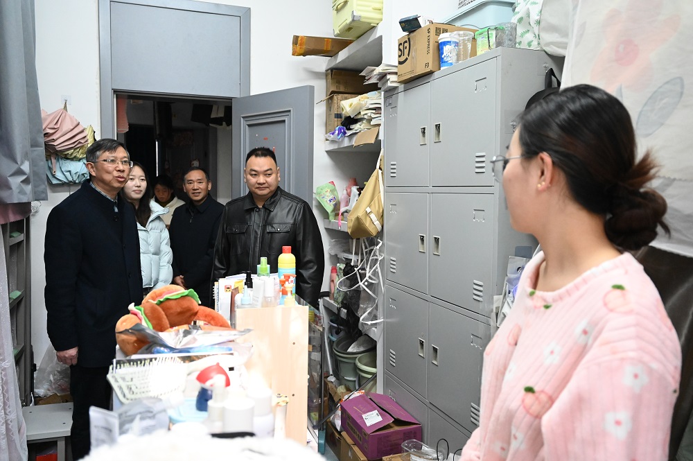 陈俊认真了解了太阳集团城网站2018关于功能型党总支建设、党建与育人工作融合等具体情况,并深入学生寝室,了解学生学习、生活状况,叮嘱同学们要注意用电安全、财产安全,养成规律作息和整洁卫生的好习惯。