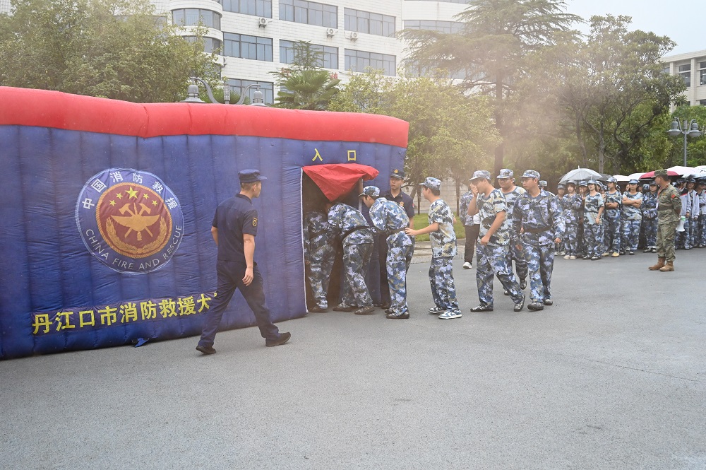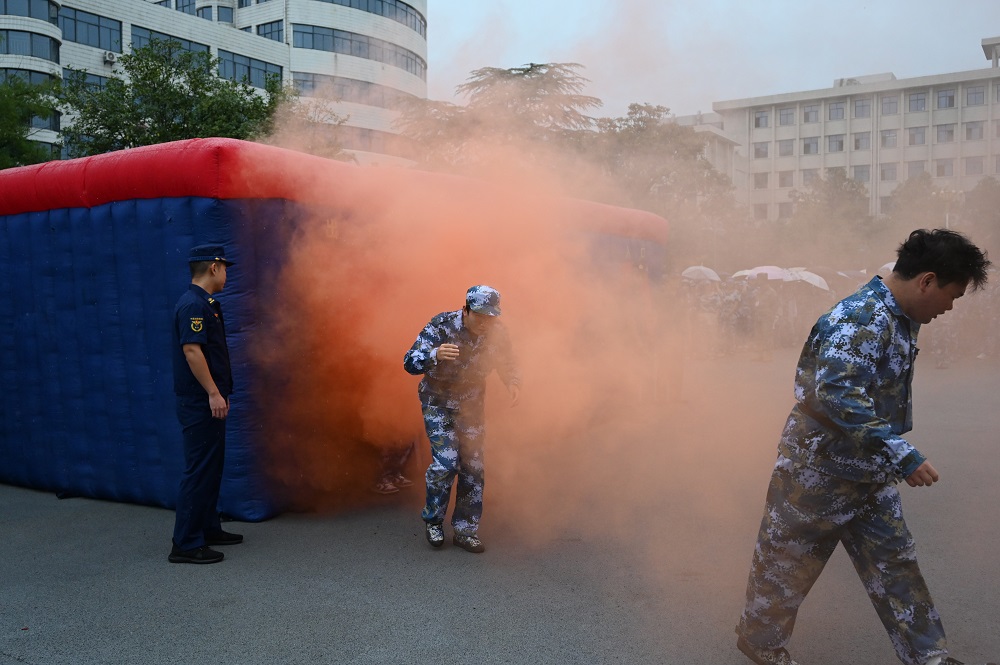 活动现场,最引人注目的是模拟真实火场环境的“火灾逃生屋”体验环节。在专业人员的指导下,师生们分批进入充满无害烟雾、光线昏暗的逃生屋,严格按照“弯腰低姿、捂住口鼻、触摸墙壁”的逃生要领,紧张有序地沿着安全指示标志进行疏散演练。